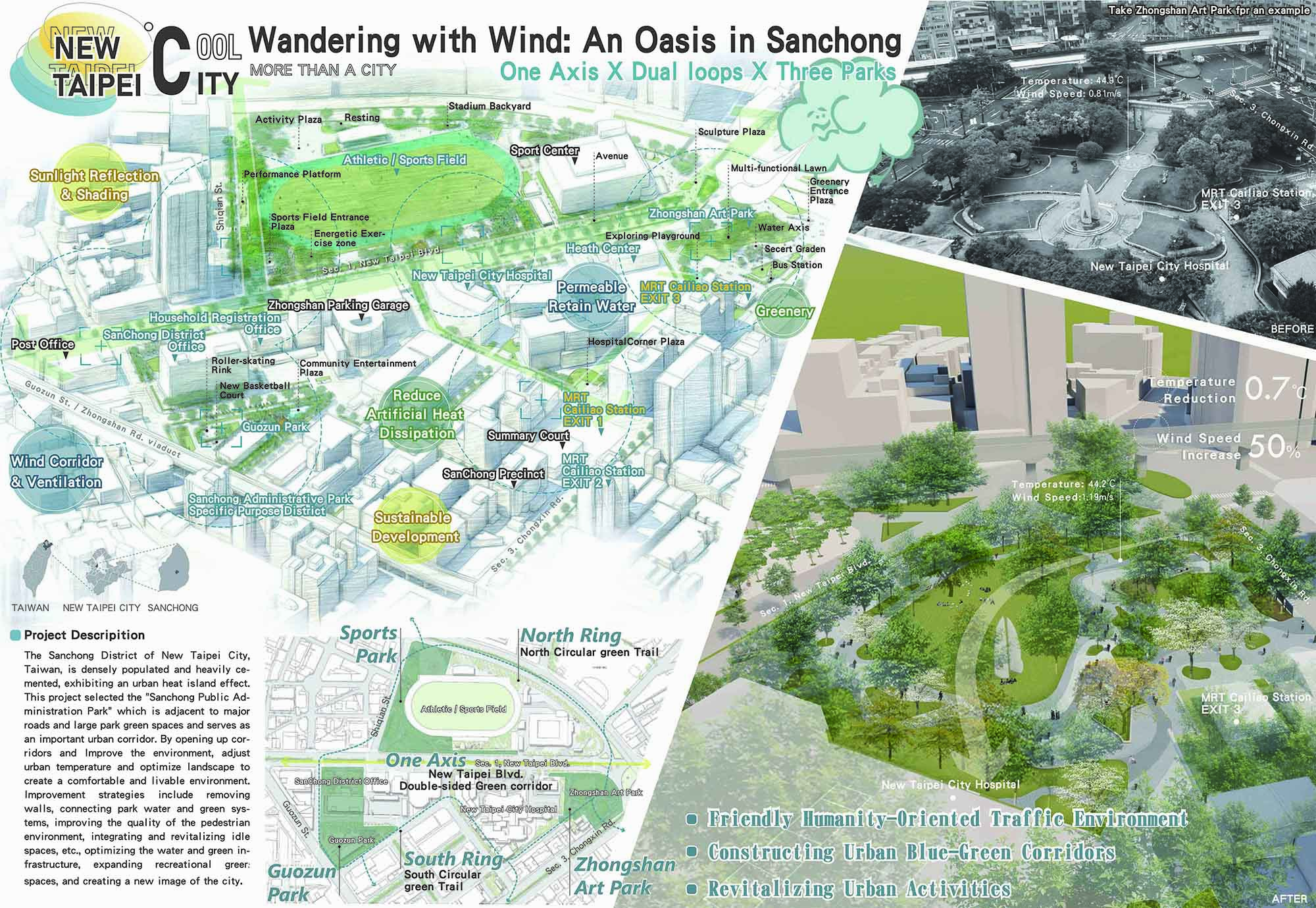 Wandering with Wind: An Oasis in Sanchong Proposal for the Sanchong Public Administration Park and surrounding scenes