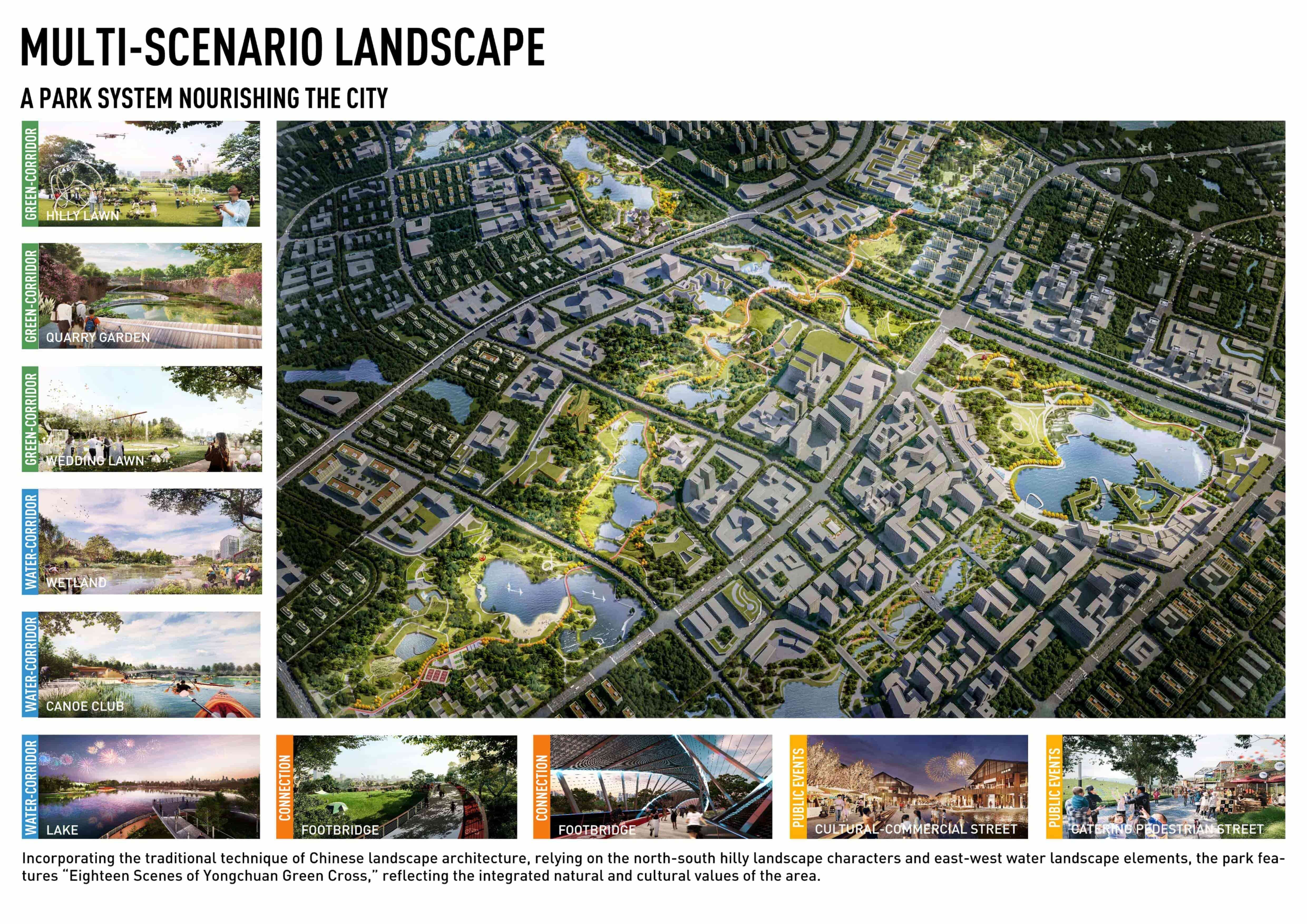 Green Cross with Diversified Layers:Central Park of Yongchuan Science and Technology Eco-City, Chongqing, China